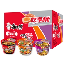 康师傅方便面开心桶红烧牛肉3桶+酸菜牛肉3桶+香辣牛肉3桶+鲜虾鱼板3桶桶面泡面整箱装休闲零食