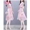 欧芙伦碎花雪纺连衣裙女2020夏季新款韩版时尚气质显瘦减龄收腰中长款裙子女5935 粉色 M
