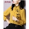 微尚瑶衬衫女2020秋季新款复古优雅荷叶边钉珠长袖立领女上衣气质优雅百搭黄色系扣女上衣6985 黄色 请拍正确尺码