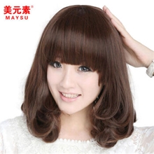 美元素 假发 女 齐刘海可爱修脸仿真蓬松梨花头卷发女士假发套hg66 2t33号深栗色