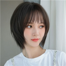 蔓茵假发女短发bobo头真发丝递针中分仿真空气刘海波波头自然逼真圆脸假发套网红学生黑 深棕色【仿真发丝】