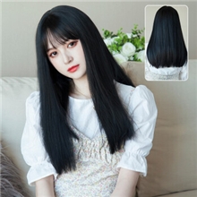 男女万通用假发黑长直发卷姬发式伪娘变装动漫假毛 黑色送佩戴发网