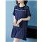 红粉宣言2020夏季新款百搭宽松蕾丝连衣裙显瘦短袖拼接裙子 蓝色 L