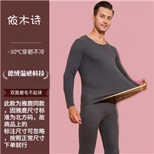 加绒山羊绒桑蚕丝保暖衣套装灰色