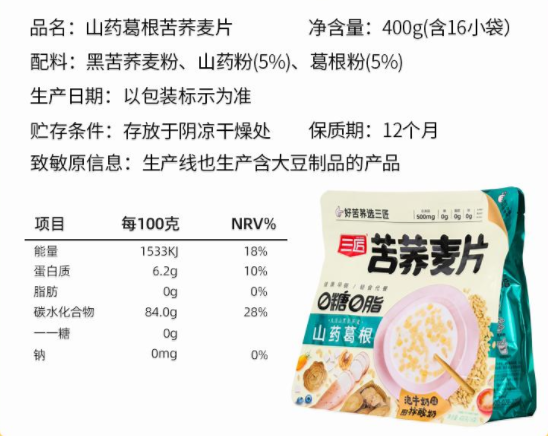 三匠山药葛根苦荞麦片(0糖0脂)400g |
