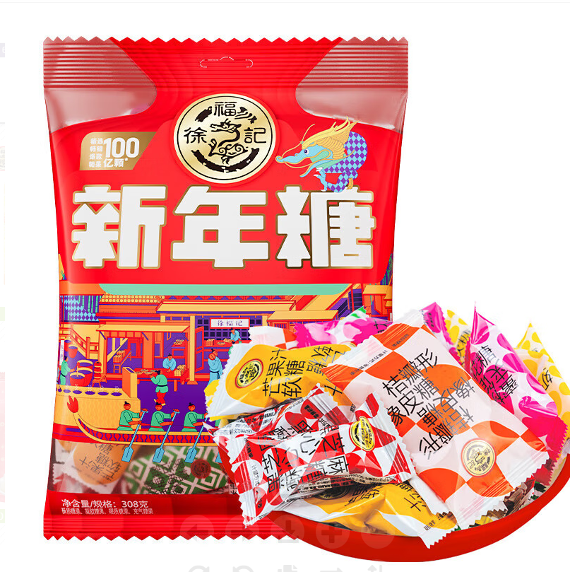 徐福记混合口味新年糖袋装308g |