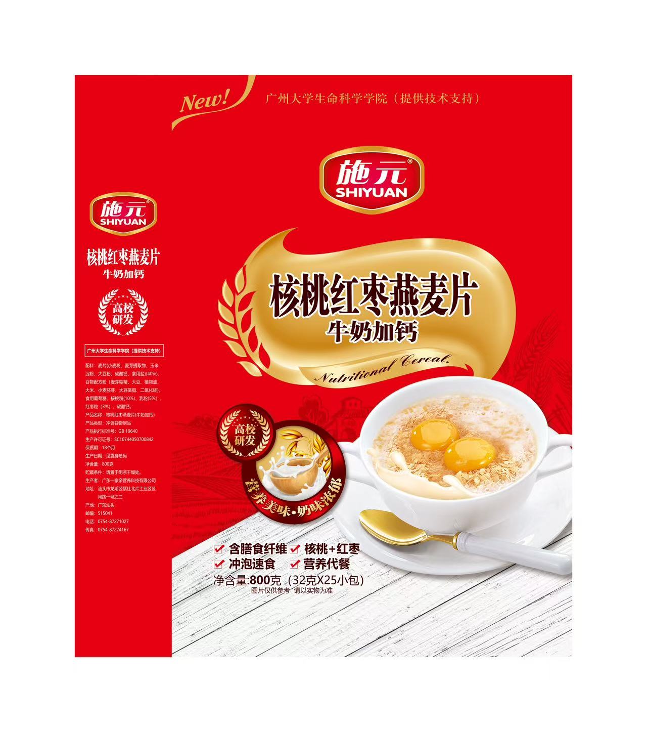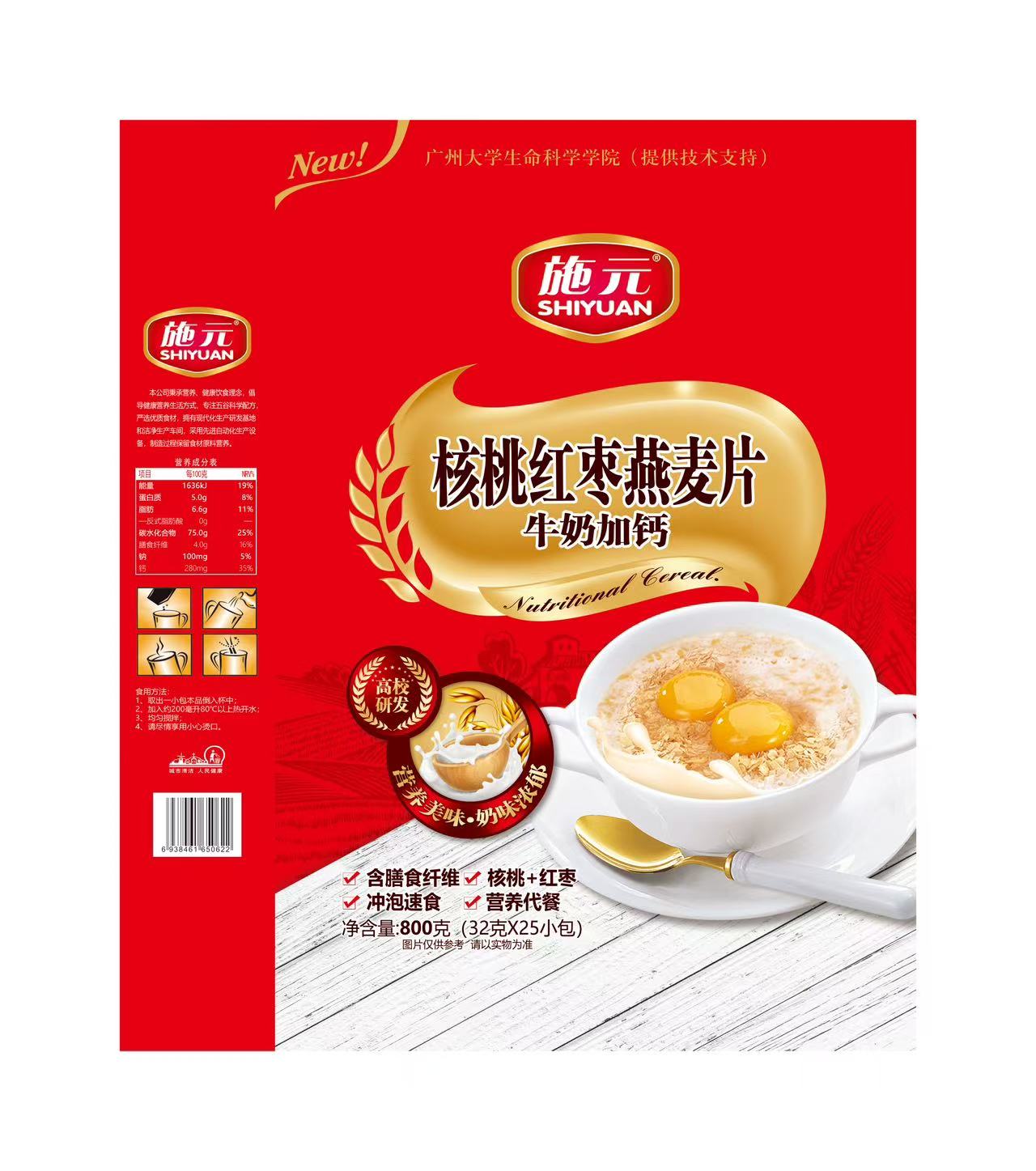 施元牛奶加钙核桃红枣燕麦片800g |