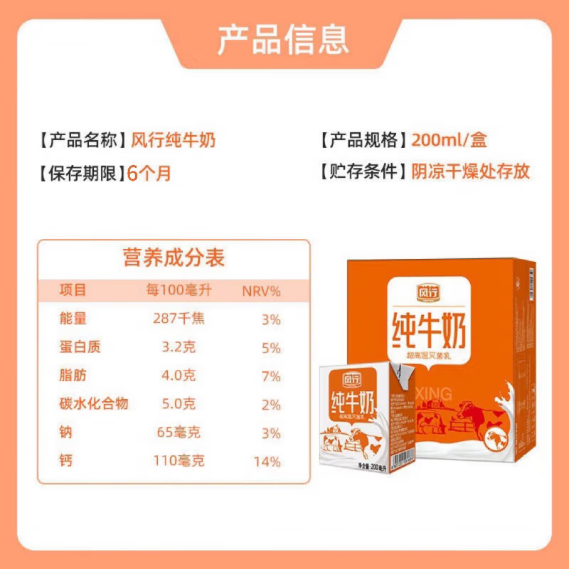 风行纯牛奶250ml |