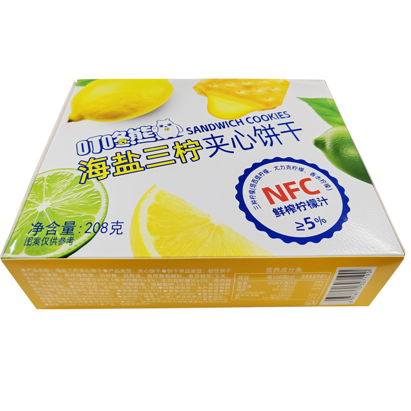 叮咚熊海盐三柠夹心饼干208g |