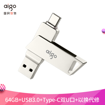 爱国者(aigo)64GB Type-C USB3.0 手机U盘 U350 银色 双接口手机电脑用 |