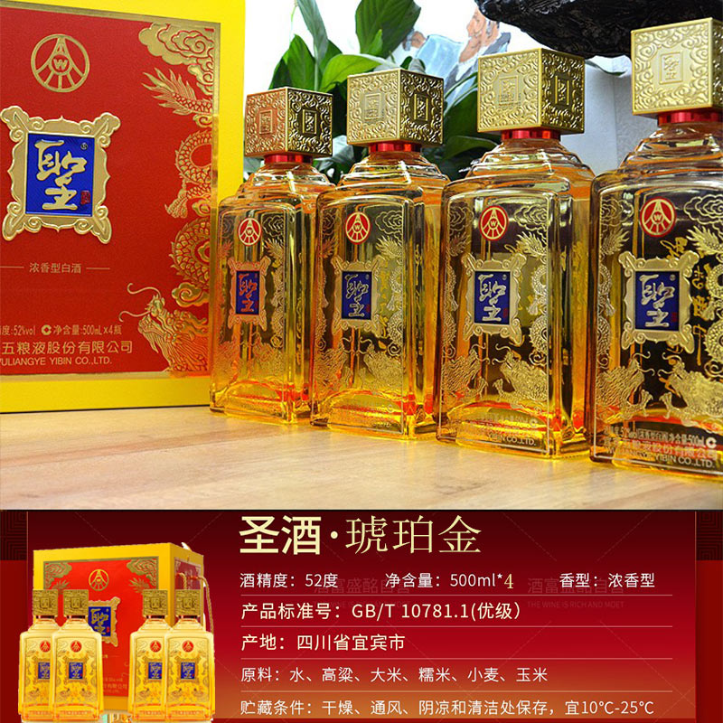 52°五粮液 聖酒 圣酒琥珀金 四瓶豪华礼盒装 |