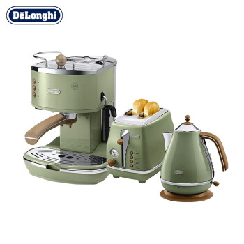 德龙(Delonghi) 半自动咖啡机 电水壶 多士炉三件套 家用 欧洲原装进口打奶泡机ECO311 复古绿(送烘烤架) |