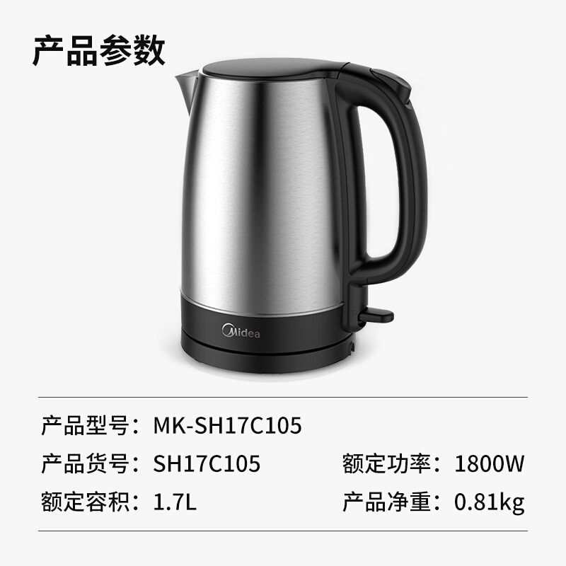 美的电热水壶烧水壶SH17C105【ABS+电子元件/黑色】 |