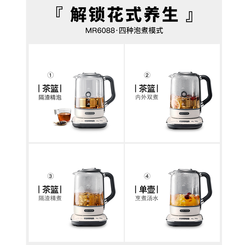 摩飞多功能升降煮茶器办公室全自动小型养生壶家用大容量花茶壶MR6088【不锈钢/颜色】 |
