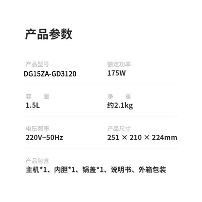 九阳(Joyoung)电炖锅紫砂锅保温1.5升家用多功能炖锅GD320【陶瓷内胆/白色】 |
