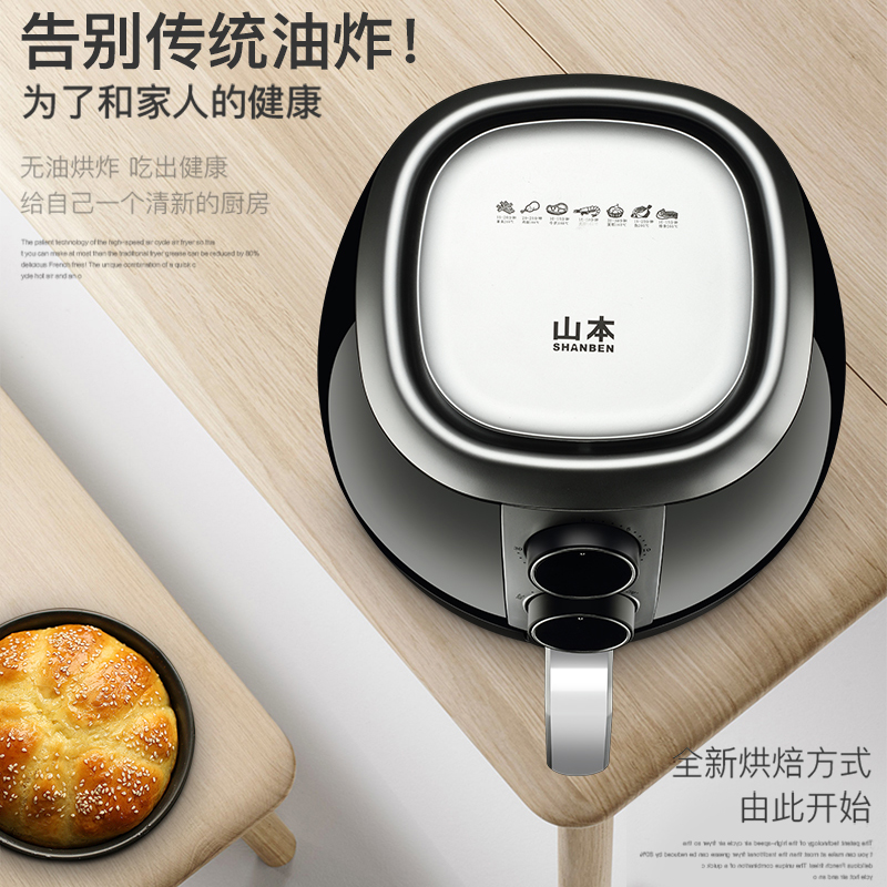 山本空气炸锅家用3.5升多功能电炸锅SB-D16【PP/黑色】 |
