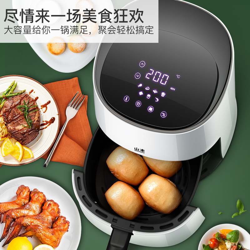山本空气炸锅家用3.0升智能液晶炸锅2021ts【PP/白色】 |