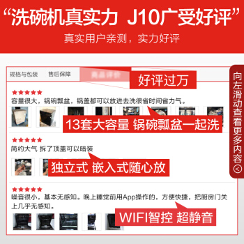 美的(Midea)13套 独立式 家用洗碗机 热风烘干 WIFI智能 洗烘一体 高温除菌 智能油污感应 嵌入式刷碗机J10 |