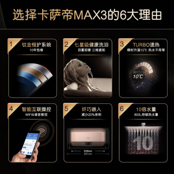 卡萨帝(Casarte)80升电热水器家用 钛金恒护系统 纤巧小体积 10倍大水量 净水洗 天沐CEC-80MAX3(U1) |