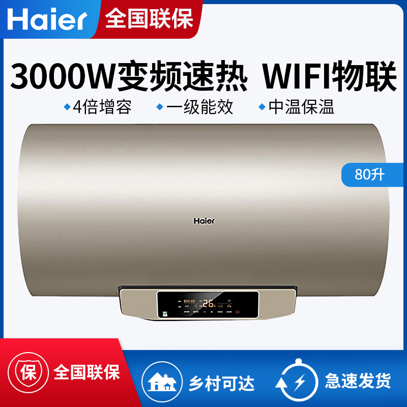 Haier/海尔 ES80H-D7(2U1)电热水器80L速热储水式智能卫生间【不锈钢/金色】 |