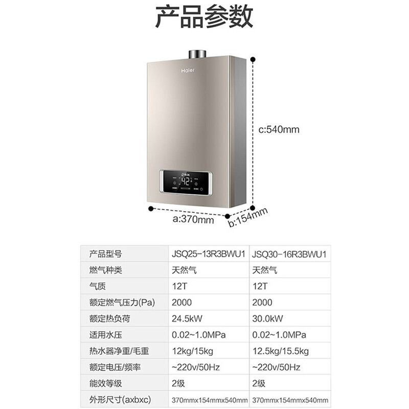 Haier/海尔 JSQ25-13R3BWU1 零冷水13升WIFI水气双调恒温高端家用强排式燃气热水器【不锈钢/金色】 |
