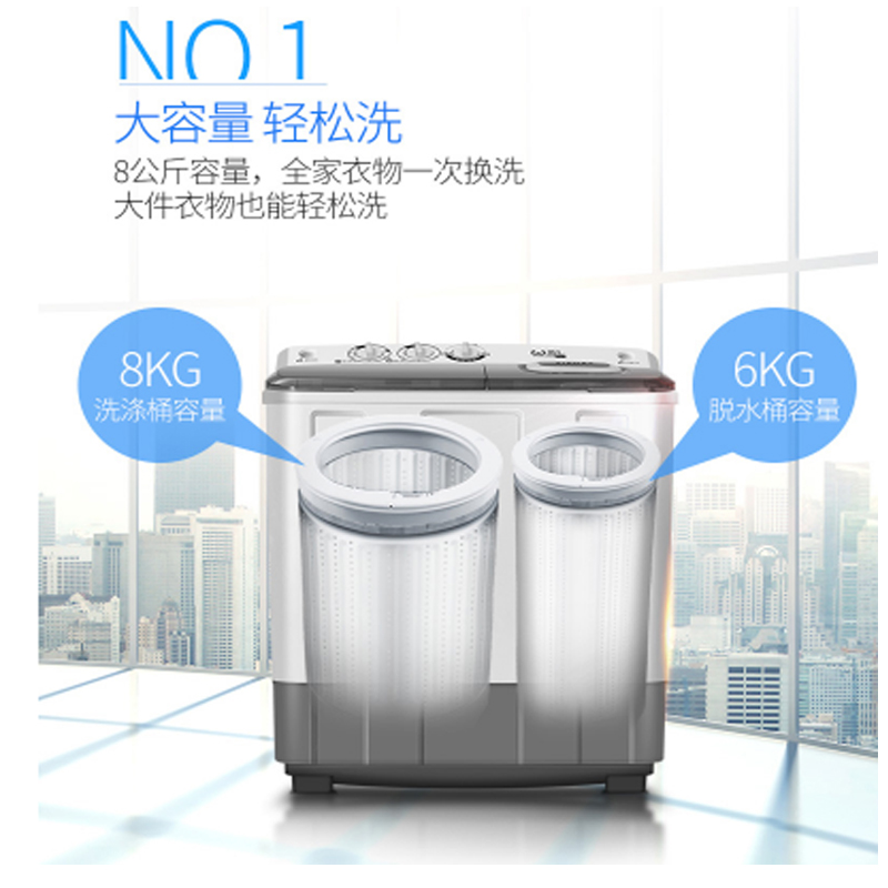 威力XPB80-8008S 8公斤半自动双缸波轮洗衣机双桶家用8kg双杠SF【洗衣机/白色】 |