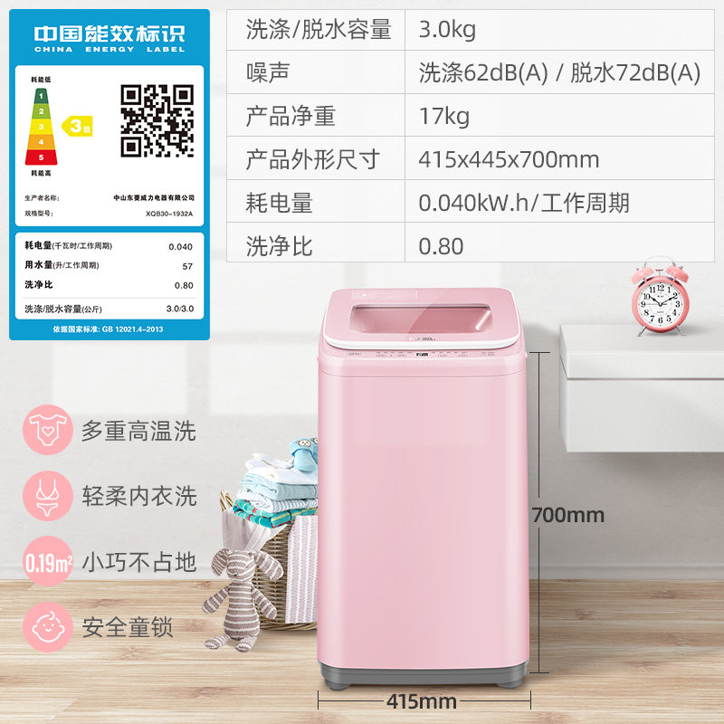 威力XQB30-1932A3kg母婴儿童小型迷你宝宝杀菌波轮洗衣机全自动SF【洗衣机/粉色】 |