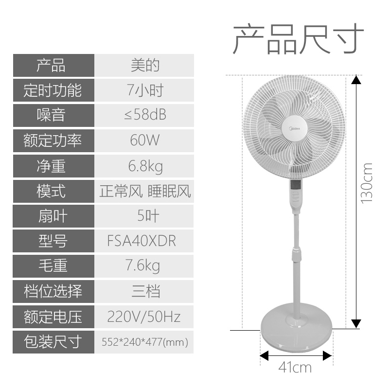 美的电风扇遥控落地扇FSA40XDR【ABS+电子元件/白色】 |