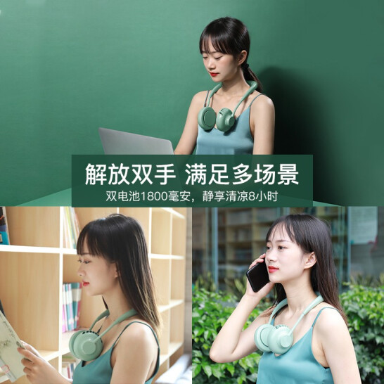 2020新款 挂脖风扇无叶USB超静音电风扇【ABS/牛油绿】 |