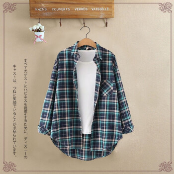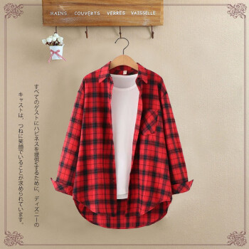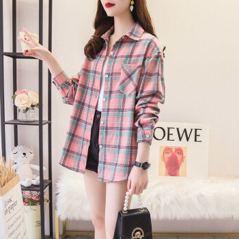 得听衬衫女2020秋装新款磨毛棉格子衬衫女秋夏季复古港味学生宽松休闲通勤百搭大码纯棉上衣女长袖外套 粉色格子(9号) M(100-115斤) |