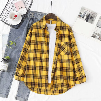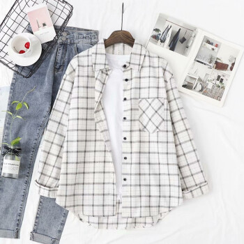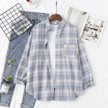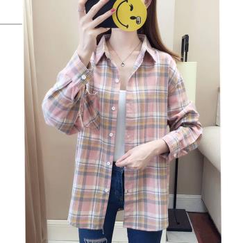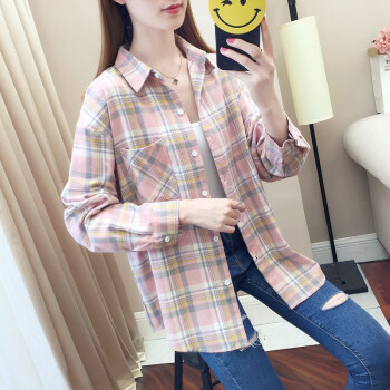 得听格子衬衫女长袖2020秋季新款小清新韩版宽松百搭学生春秋装纯棉衬衫大码外套上衣女 粉红色 M(105-120斤) |