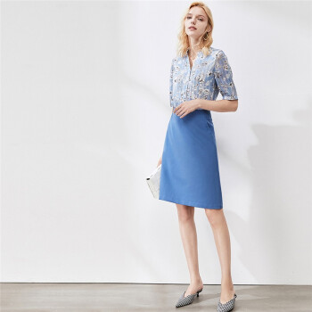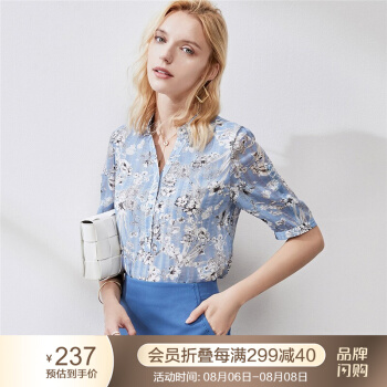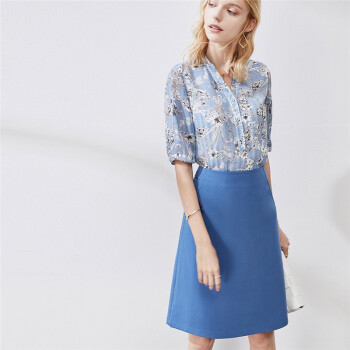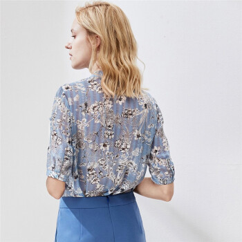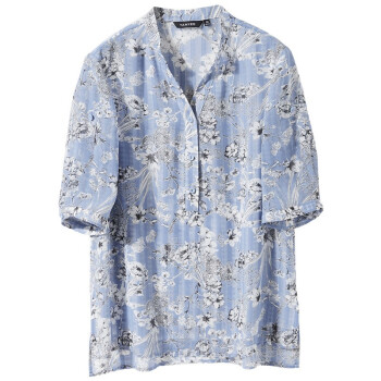颜域短袖雪纺碎花衬衫秋装2020年新款女时尚减龄显瘦气质印花衬衣 蓝花 XL |