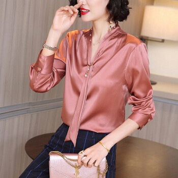 微尚瑶衬衫女2020秋季新款韩版气质减龄立领系带纽扣上衣女百搭休闲纯色V领衬衣女6976 粉色 请拍正确尺码 |