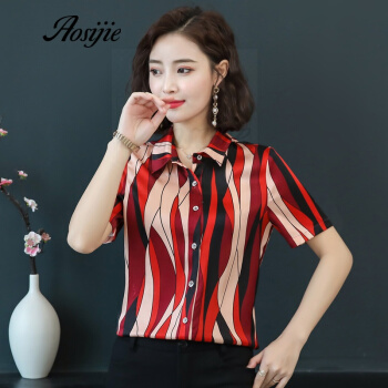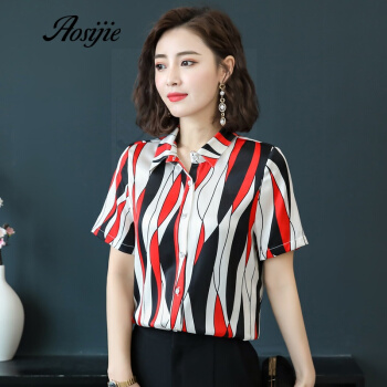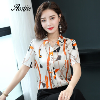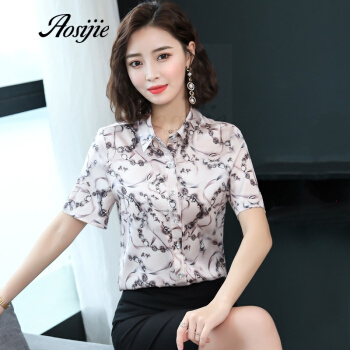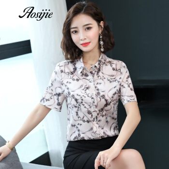 Aosijie轻奢品牌女装真丝碎花衬衫女2020夏装新款重磅桑蚕丝衬衣修身显瘦气质上衣 4色(粉色) M |