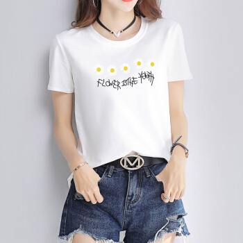 欧芙伦t恤女短袖2020新款宽松印花小雏菊简约时尚体恤上衣潮A0163 粉色 M |