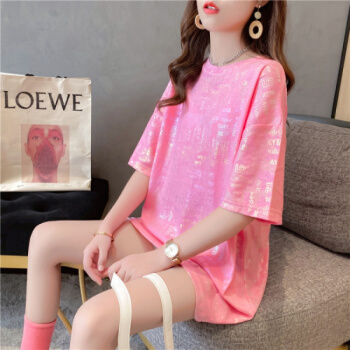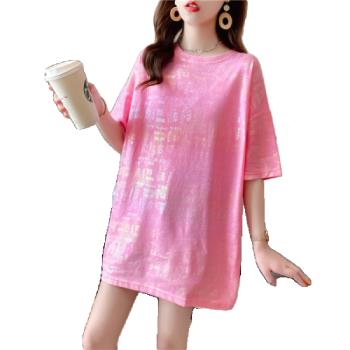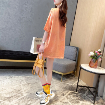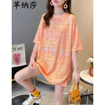 苹纳莎 短袖T恤女韩版宽松2020夏季新款时尚个性中长款亮闪闪上衣大码女装打底衣服潮 桔色 L |