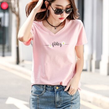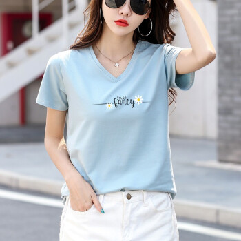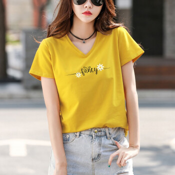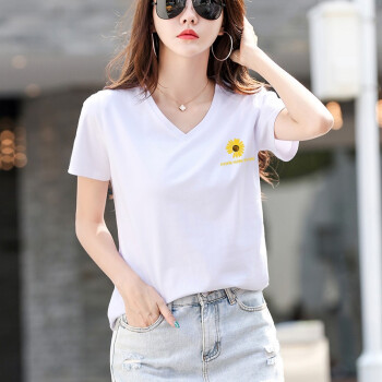 茵艾曼t恤女短袖宽松版2020夏季新款百搭韩版显瘦纯棉T恤女V领时尚网红潮小雏菊半袖体恤 7007V领白色 L《105-115斤》 |