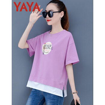 鸭鸭服饰yayaT恤女季韩版2020年新款百搭宽松紫色女装夏大码短袖t恤女短款上衣 香芋紫 请选择正确尺码 |