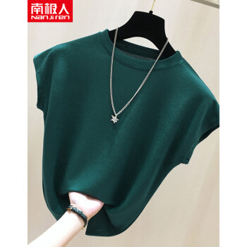 南极人 冰丝短袖t恤女夏装新款2020韩版时尚ins针织打底衫内搭宽松薄款上衣外穿体恤潮 N1-NRC402-1922-绿色 M |