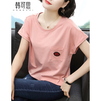 【精选好货】韩可思t恤短袖女2020夏装新款宽松显瘦中年妈妈棉粉色打底衫时尚小衫洋气百搭体恤夏 粉色 请拍正确尺码 |