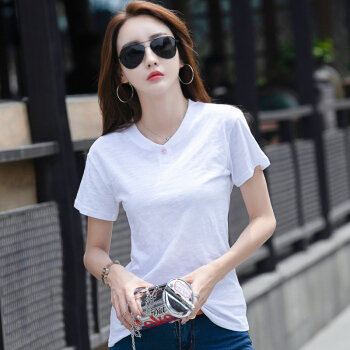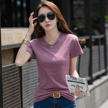 红粉宣言2020夏季新款百搭宽松竹节棉大码T恤女短袖 蓝色 L |