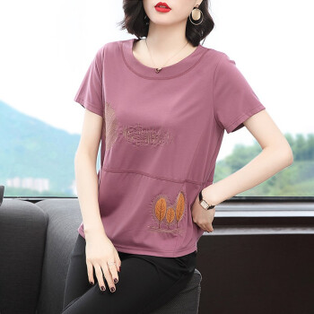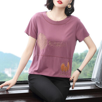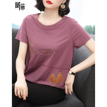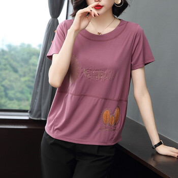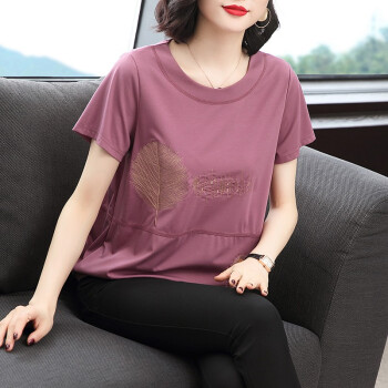 【精选好货】晞薇紫色宽松t恤女2020夏季新款短袖半袖女装夏装百搭体恤中老年妈妈装大码上衣女 紫红色 请拍正确尺码 |