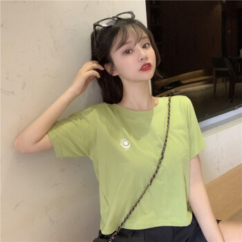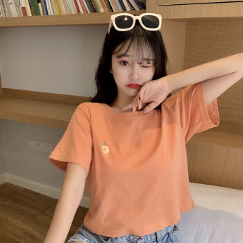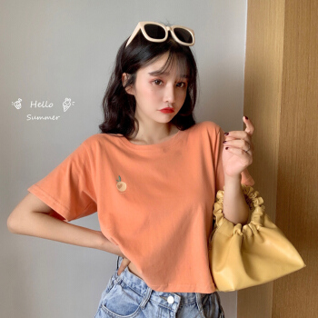 短袖t恤女ins潮网红2020夏季新款韩版修身显瘦体恤纯色纯棉短款上衣秋款 橘色 S |