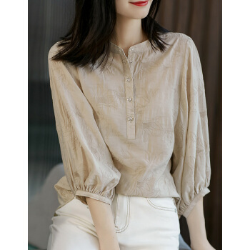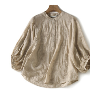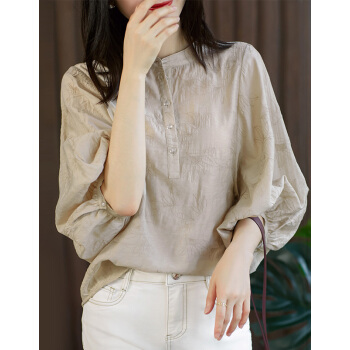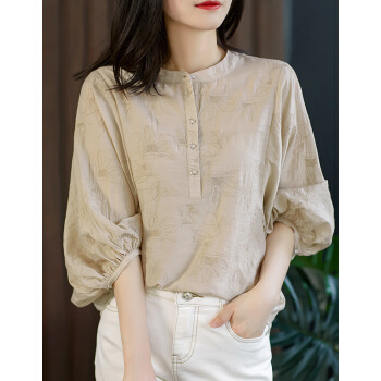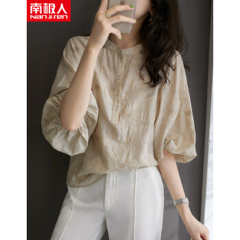 南极人 短袖t恤女士夏季2020年新款圆领宽松绣花遮肚减龄灯笼袖复古简约小衫半袖体恤上衣 N5-GT249-631-杏色 M |
