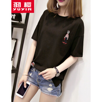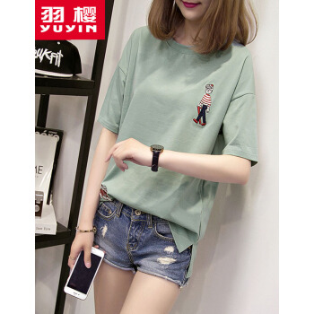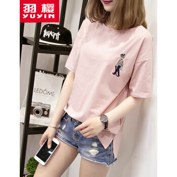羽樱 短袖t恤女2020夏装新款大码女装宽松韩版学生棉T恤半袖上衣服女 7338 白色 L |