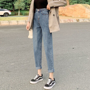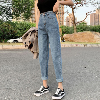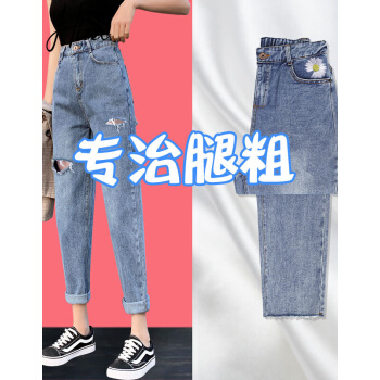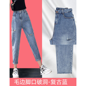 【尖货精选】Hizze牛仔裤女裤夏季薄款2020年新款直筒宽松破洞高腰显瘦老爹裤九分百搭休闲萝卜裤 复古蓝-破洞毛边 请拍正确尺码 |