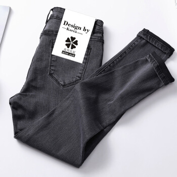 南星点点牛仔裤女九分2020秋装新款网红泫雅高腰显瘦加绒长裤紧身小脚裤子 浅蓝灰九分(偏深) 27 |