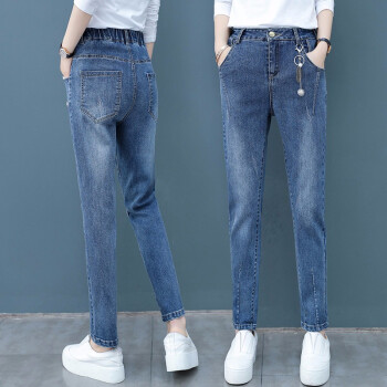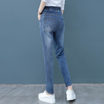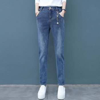 爱路喜休闲牛仔裤女2020新款韩版女装哈伦裤宽松高腰直筒裤子女潮 蓝色 L/27 |
