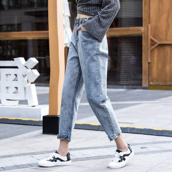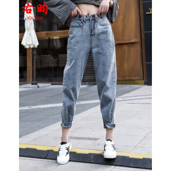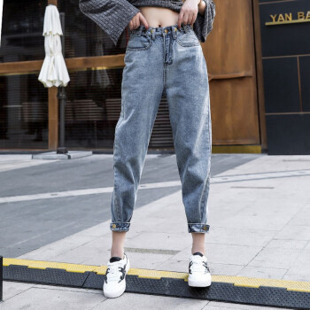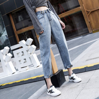 【2件特价】右昀 牛仔裤女2020夏季薄款九分老爹裤子新高腰网红泫雅宽松哈伦春秋萝卜潮 7768浅蓝色 L【适合110-120斤】 |