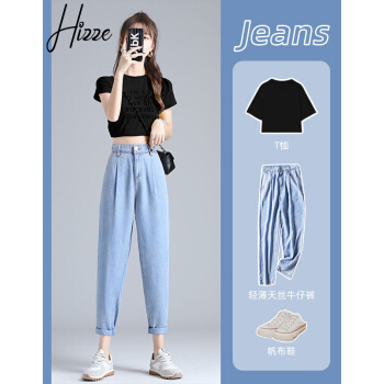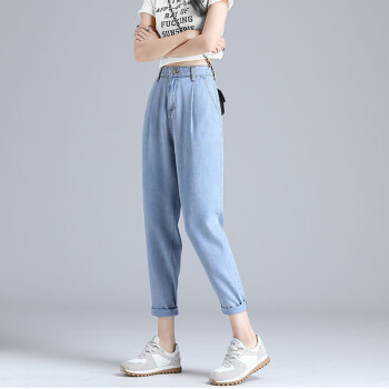 【精选好货】Hizze天丝牛仔裤女裤2020夏季新款薄款宽松高腰显瘦九分萝卜裤冰丝超薄百搭老爹哈伦裤 复古蓝 请拍正确尺码 |